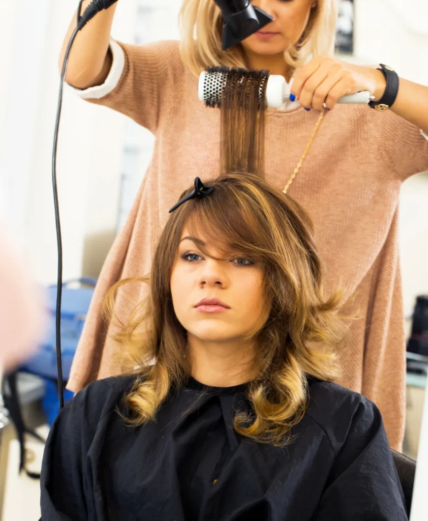 O procedimento inclui diagnóstico capilar, definição do estilo desejado e execução com técnicas modernas que proporcionam movimento, leveza e acabamento refinado.